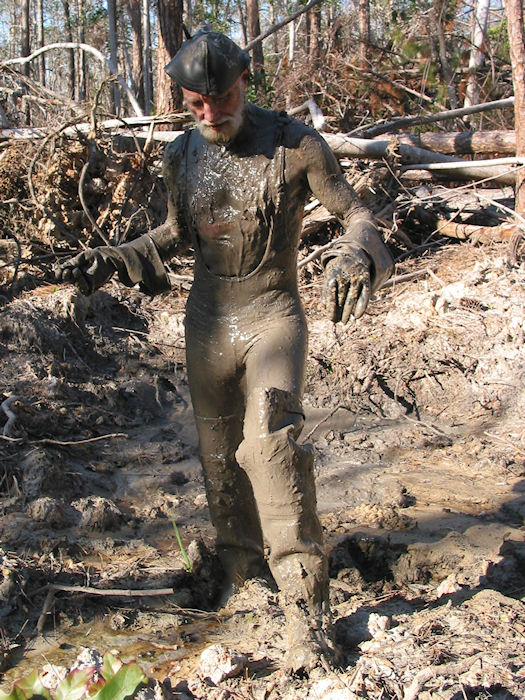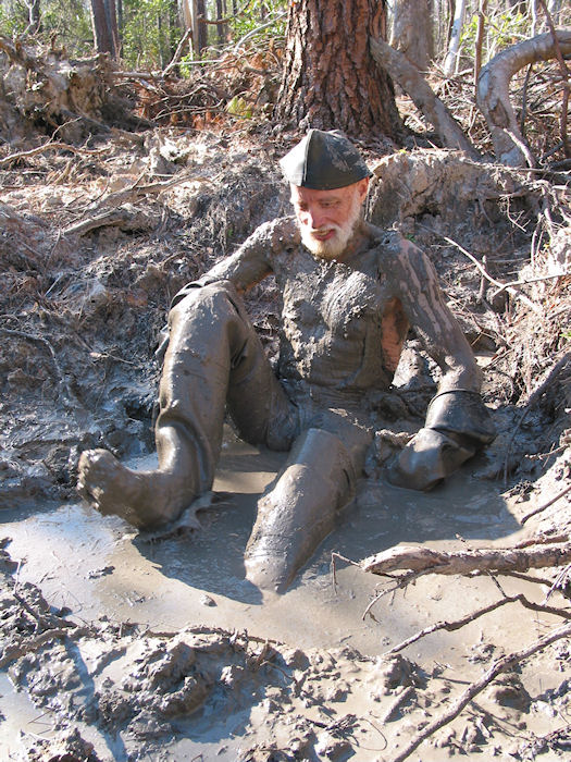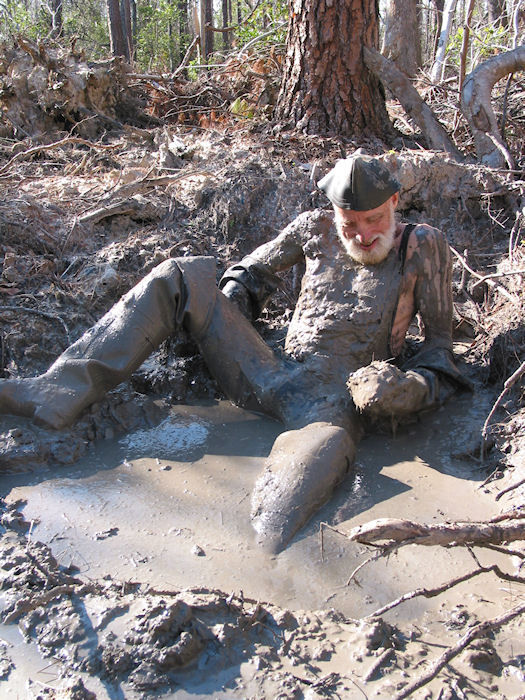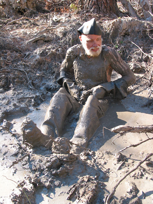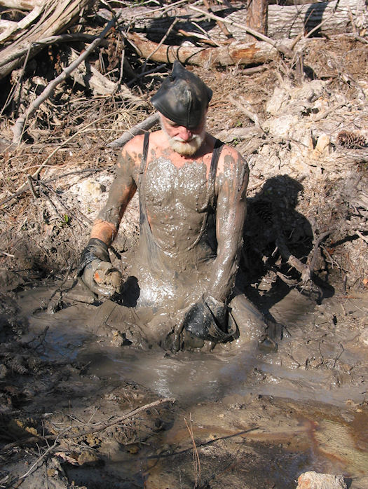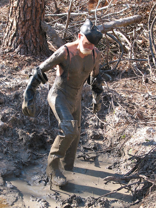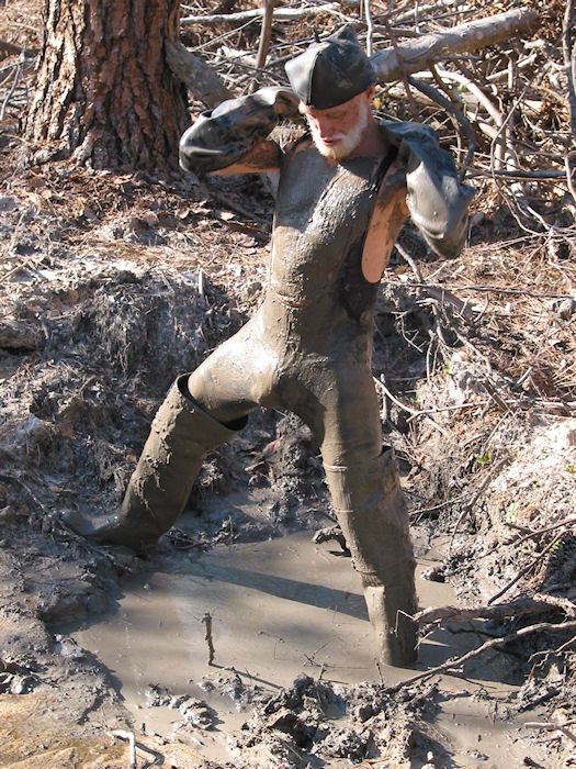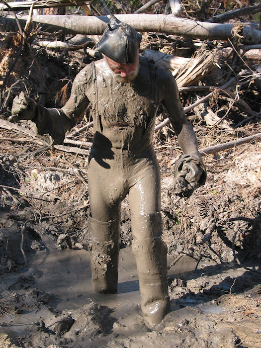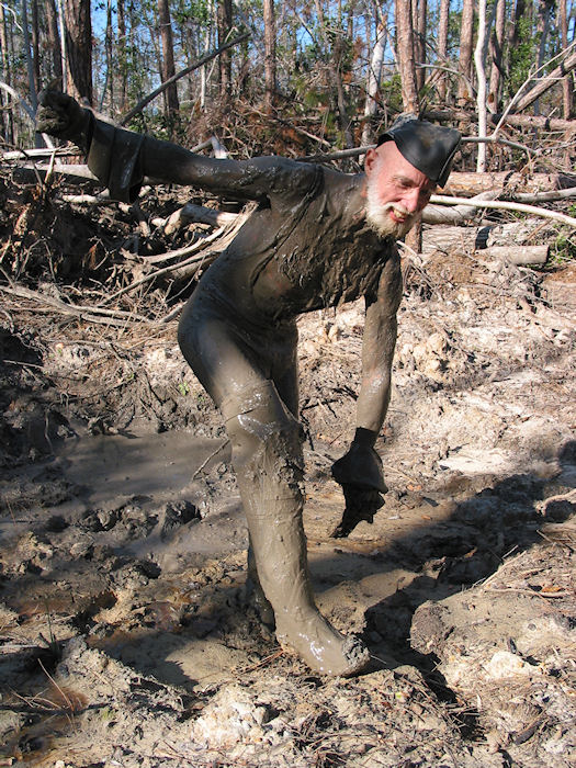 | Homo Sapiens was destined to walk erect. But, Homo Humus is another story! That mud load has to be conjured with! | Even my Coon Hunter boots don't guarantee traction in the deepening wallow! |