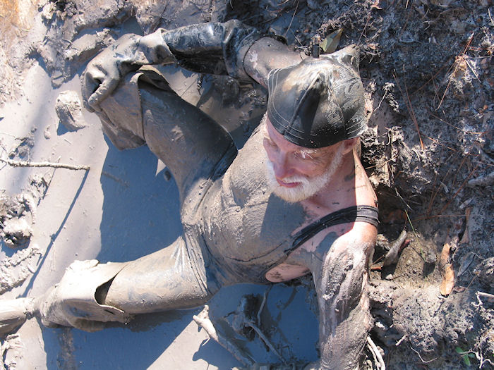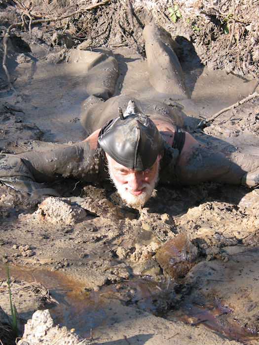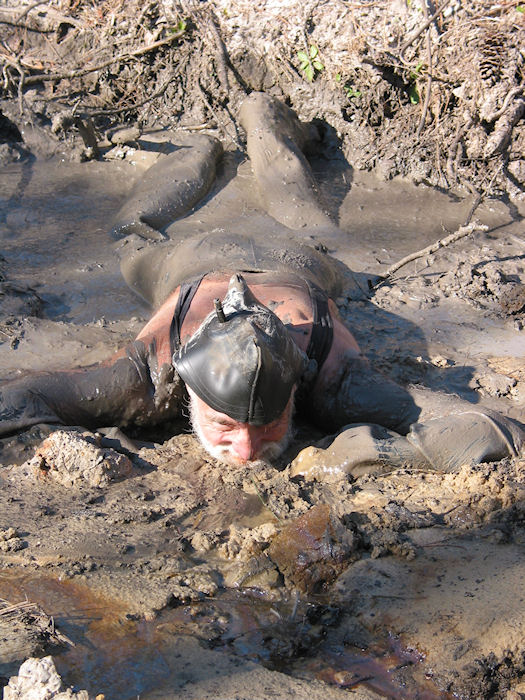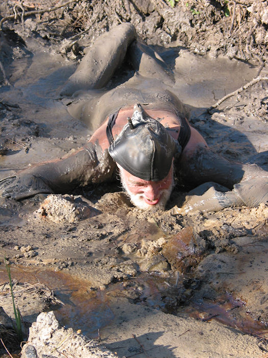 | Due to the available mud geography, mud diving wasn't an option. But how about mud surfing? Well again, maybe not! | Mud planing, now that's a deal! Chest-based slithering, what an experience! |