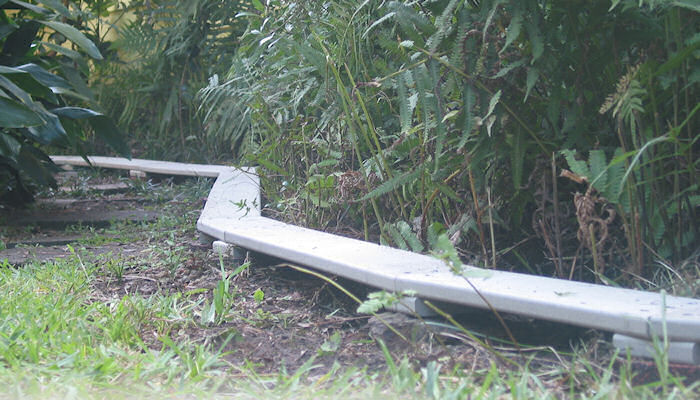 In a rare Sunday afternoon burst of activity, the Chief Arborist and Lead Leveller worked together to settle the remaining roadbed into place. Surveying indicated that the 63 feet of trackage between the Memorial Bell Tower switch and the East Front Porch lead represents an upward incline of 35 inches. Each roadbed section was adjusted in elevation to achieve a nearly smooth and constant grade of 4.6% The photo at right shows the roadbed adjacent to the deck, while the linked photo depicts the roadbed traversing the Magic Portal.