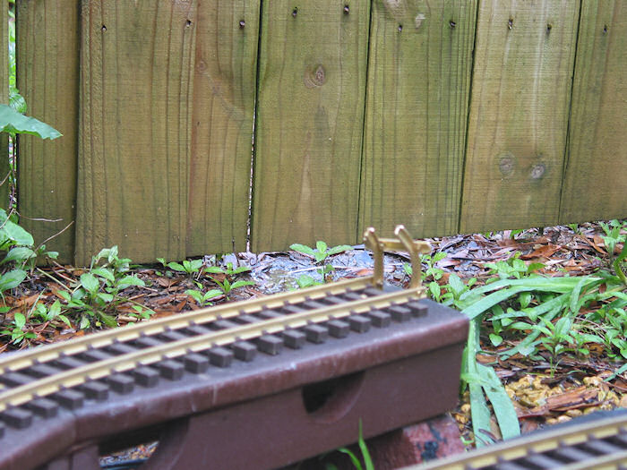 No matter! Seems our President figured that would be a neat place to put a siding for his old live-steam Shay. And, to make it even more authentic, how about a siding bumper made from scraps of brass rail? Our track-laying crew must have just too much time on their hands!